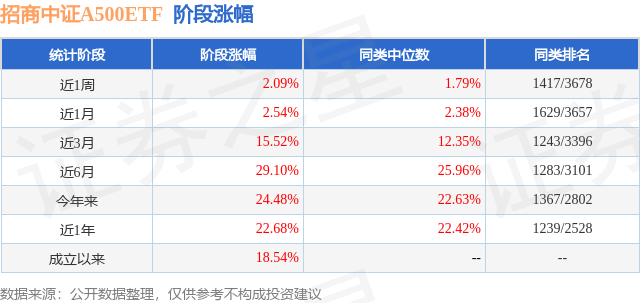 从业绩表现来看,招商中证A500ETF基金过去一年净值涨幅为22.68%,在同类基金中排名1239/2528,同类基金过去一年净值涨幅中位数为22.42%。而基金过去一年的最大回撤为-14.33%,成立以来的最大回撤为-15.02%。